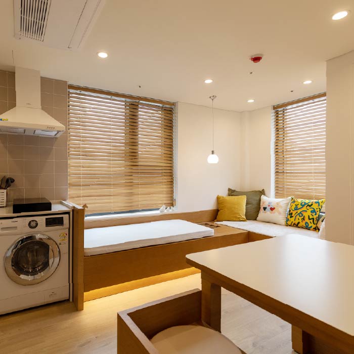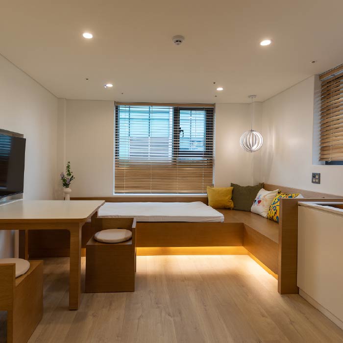 여럿이 편안한생활형 객실침실·거실 분리넓은 객실여유 있는 수납공간독립적인 휴식 공간